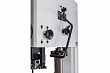 Механизм натяжения и центрирования ленты включает в себя две группы трехроликовых направляющих на шарикоподшипниках, стрелочный индикатор уровня натяжения, регулирующие маховики, два смотровых окошка и рычаг быстрого натяжения-ослабления. Он не совсем обычен, поскольку имеет не два, а три фиксированных положения: рабочее (плотно натянуто), для хранения (лента ослаблена, но держится на шкивах) и сервисное (для замены полотна). Чтобы улучшить плавность работы, использованы чугунные шкивы с массивным телом, а не в виде спицованных колес, как раньше.