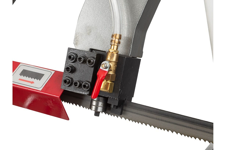 Моторная группа состоит из мощного электродвигателя - 1,5 кВт, обеспечивающего стабильную работу ленточного станка в различных скоростных режимах. Ременная передача позволяет осуществлять пиление заготовок на скоростях движения ленточного полотна в 29, 50, 73 и 95 м/мин. Управление работой станка осуществляется с пульта управления, установленного на консоли. Оборудование оснащено кнопкой аварийной остановки.