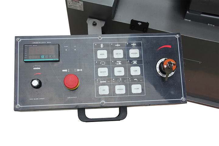 Плавная регулировка скорости движения полотна в диапазоне от 9 до 93 м/мин, позволяет подобрать нужный режим резания и повысить качество производимой детали. Инверторное управление двигателем позволяет поддерживать постоянную скорость движения полотна при изменении нагрузки.