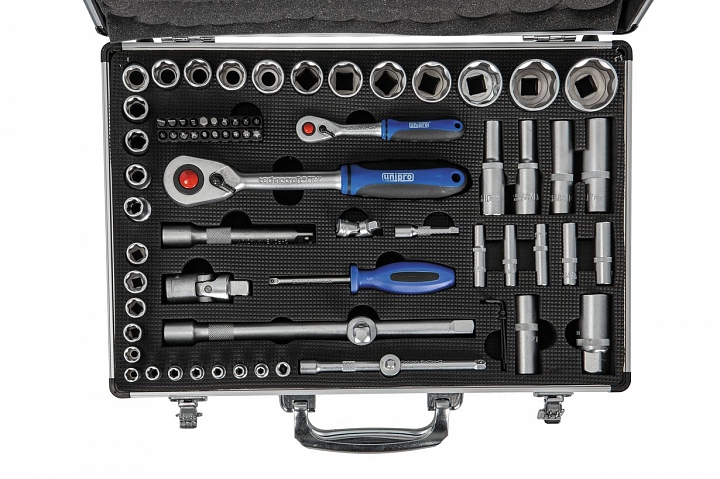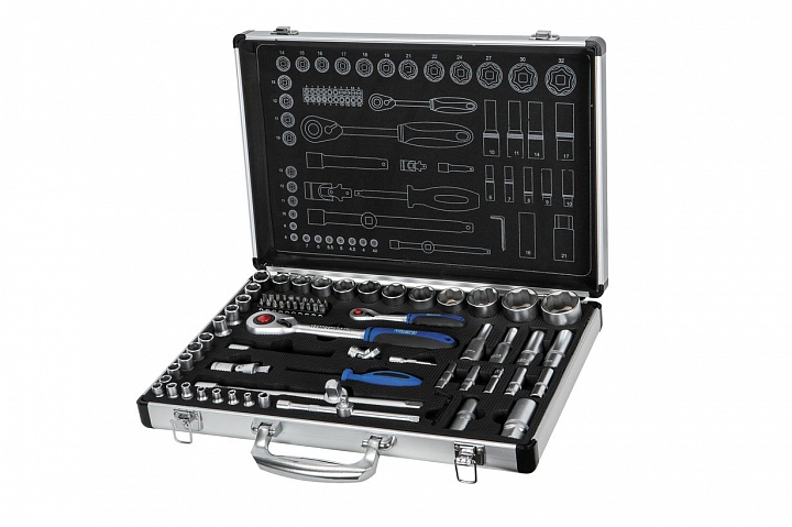Набор автомобильного инструмента в алюминиевом кейсе, на 75 предметов, хром-ванадий.