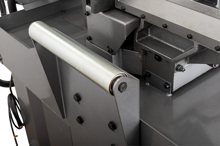 Модель MBS-1012DASP имеет регулируемую направляющую для регулировки прохода ленточного полотна в зависимости от формы заготовки и ее диаметра. Направляющие блоки осуществляют позиционирование полотна непосредственно под прямым углом к поверхности обрабатываемой заготовки. Максимальная стойкость ленточного полотна обеспечивается подачей СОЖ в зону резания.