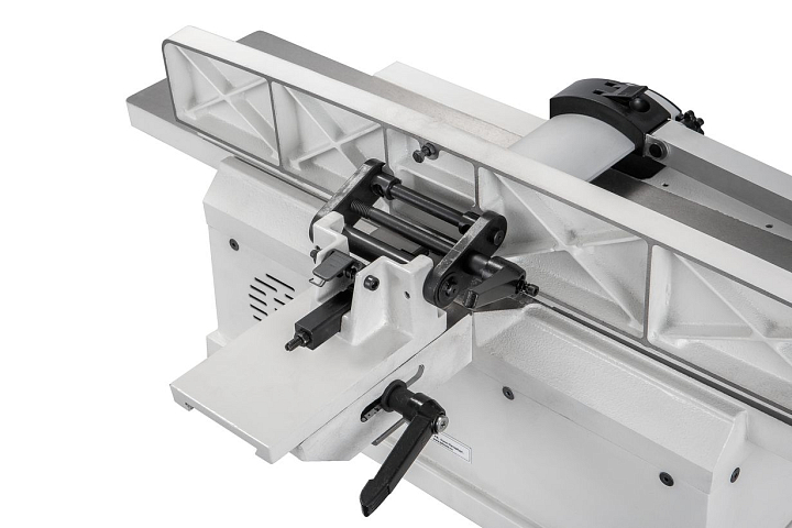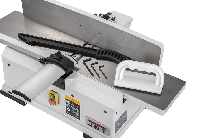 Основное преимущество JSJ-6 в сравнении с аналогами в том, что его конструкция обеспечивает точную комфортную работу без вибраций: массивные столы, упор и его кронштейн сделаны так же, как на тяжелых профессиональных моделях, что в компактном классе настольных строгальных станков почти не встречается.