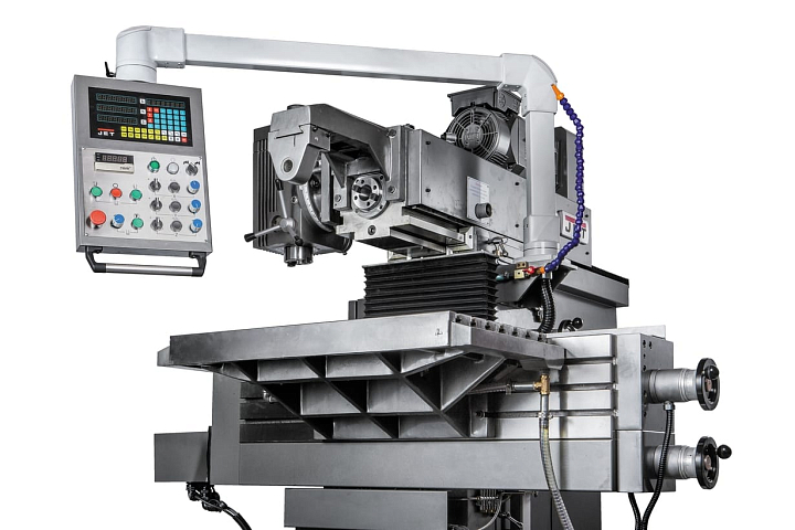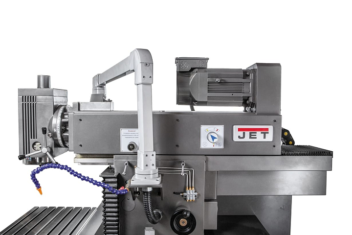 Особенности:Широкоуниверсальный фрезерный станок JET JUTM-1834 Servo DRO – мощный и производительный станок в линейке оборудования компании. Он удовлетворит требованиям самого взыскательного заказчика и рассчитан на тяжелые условия эксплуатации и длительные нагрузки. Станок предназначен для всевозможных видов фрезерной обработки, сверления, растачивания и прочих операций в любом координатном направлении и может достигнуть высокой точности. Имеет горизонтальный и вертикальный рабочие столы, что существенно расширяет круг задач и операций при производстве оснастки, инструментов, приспособлений, пресс-форм и других деталей сложных форм, мелкими сериями на механообрабатывающих, инструментальных и ремонтно-механических участках.