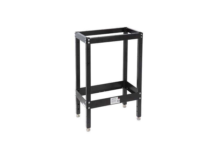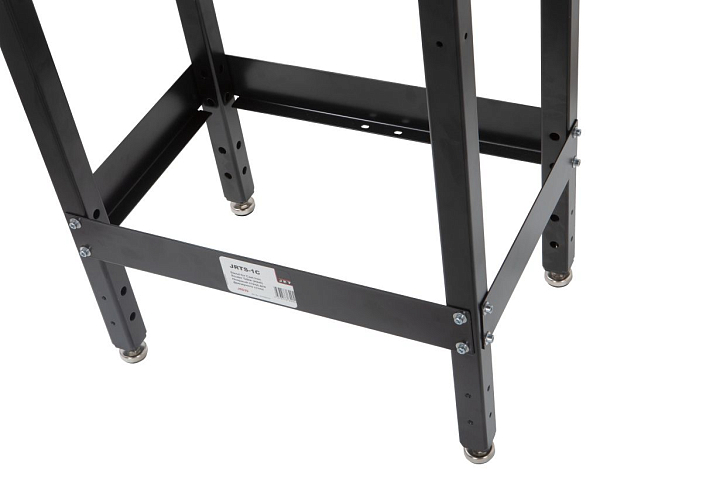 Конструкция – стальная сборная рама. Отверстия для крепления чугунного фрезерного стола JRT-1C или любого другого. В основания вертикальных стоек есть регулировочные ножки, ими можно отрегулировать высоту стола.
