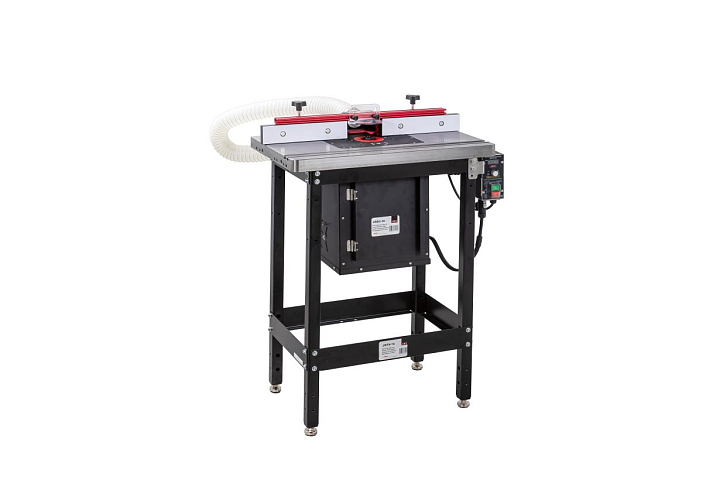 Поверх такой подставки устанавливается стол JRT-1C. Дальше, при полной сборке фрезерного комплекта JET, используется как деревообрабатывающий фрезерный станок. А именно – фрезерование массивной древесины любых пород.