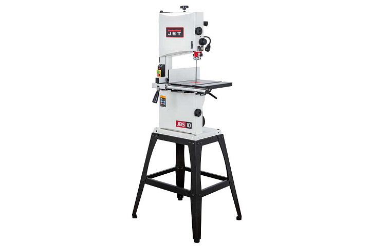 JWBS-10SL – напольная ленточная пила с трехопорными роликовыми направляющими, чугунным рабочим столом и двумя скоростями, предназначенная для любительской эксплуатации. Ее рабочие параметры позволяют «распускать» довольно крупные заготовки с высотой до 152 мм, предусмотрен наклон стола для выполнения скошенных резов.